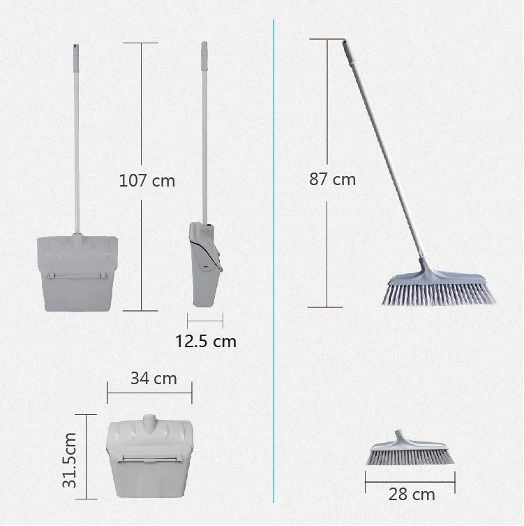 施達 防風垃圾鏟全面防風設計,不易掦塵, 垃圾不外露。鏟邊自帶梳齒, 一梳即把毛髮梳落,不需用手扯掉毛髮,方便衛生。 CT Dust pan with broom無縫貼地,鏟邊緊貼地面,掃地不漏灰;大容量,一次可以裝更多垃圾,不用頻繁倒垃圾,高效省時。防灑漏垃圾鏟採用PP優質材料, 堅固耐磨, 不易老化,掃把毛選用PET材質,硬度高,不易揚塵。垃圾鏟手柄採用鋁合金,堅固耐用,不易生銹損壞。輕鬆收納不佔地方,適用於家居, 辦公室, 學校, 購物商場, 醫院, 酒店。