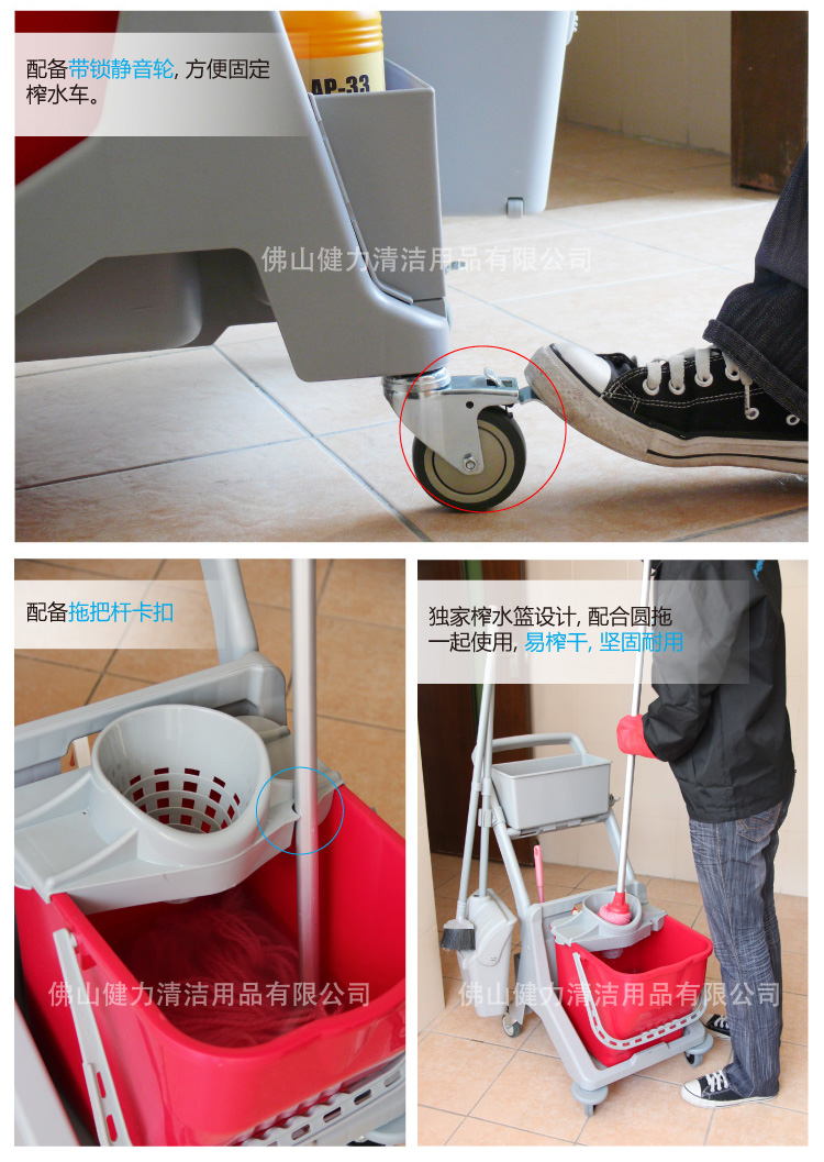 施達 趟門儲物箱+捲簾頂蓋清潔清潔服務車/平拖 配三桶
