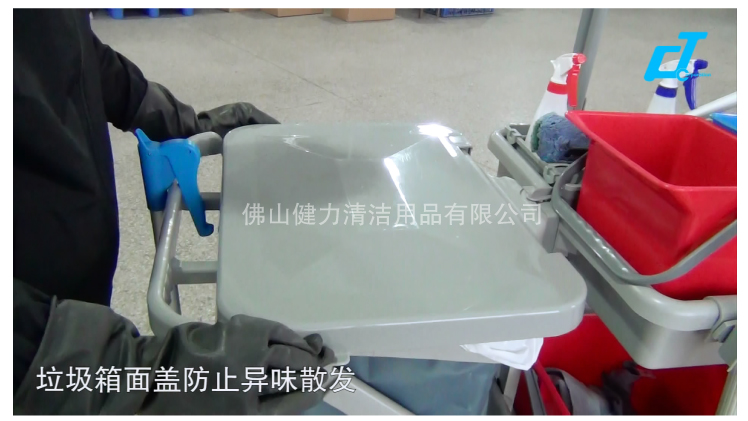 施達 趟門儲物箱+捲簾頂蓋清潔清潔服務車/平拖 配三桶