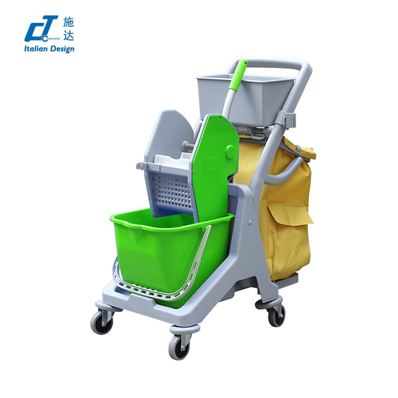 施達 趟門儲物箱+捲簾頂蓋清潔清潔服務車/平拖 配三桶
