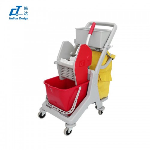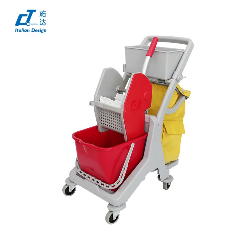施達 趟門儲物箱+捲簾頂蓋清潔清潔服務車/平拖 配三桶