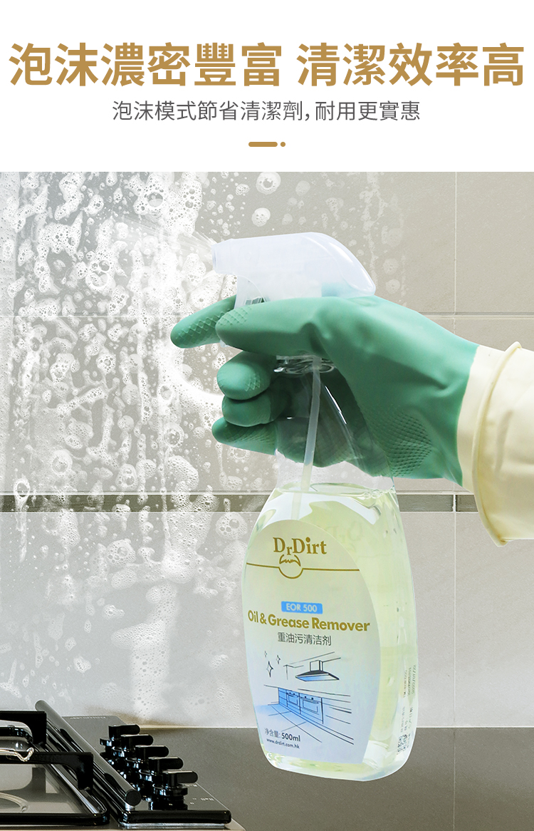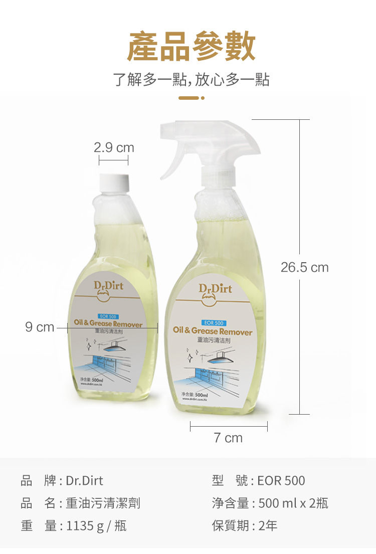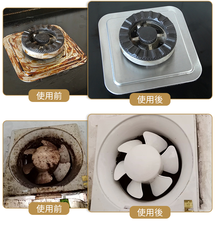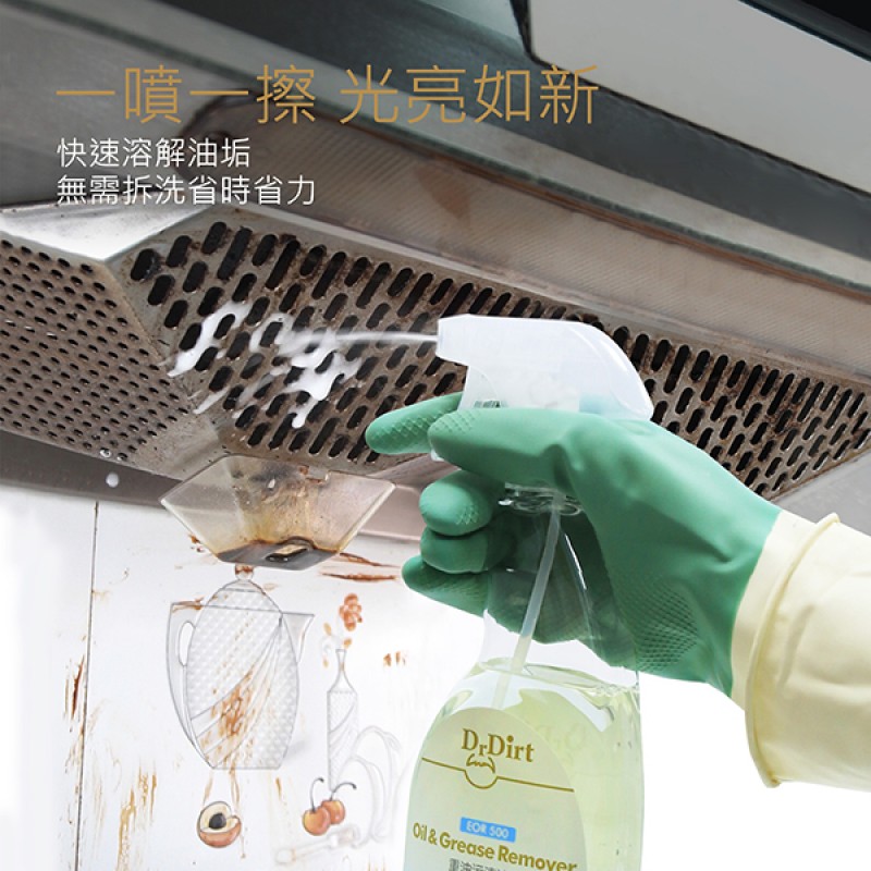 - 厚重油污可先自行刮去,再噴上清潔劑,除油效果更好