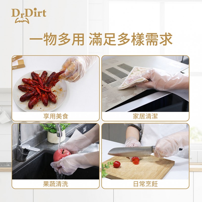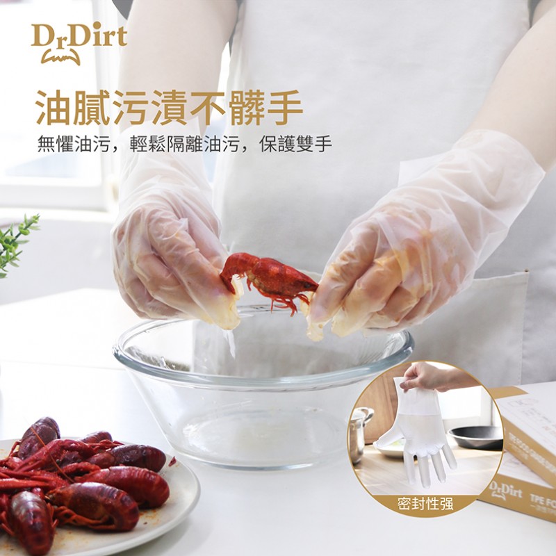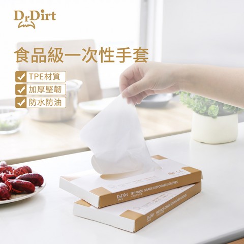 Dr.Dirt 食品級 一次性TPE手套 中码 50隻/盒 買1送1優惠; 平均$11.5一盒