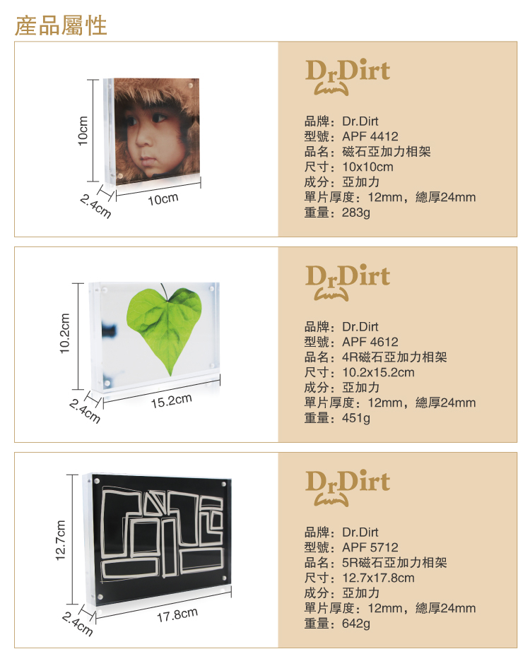 Dr.Dirt 磁石亞加力相架 4R, 4x6"