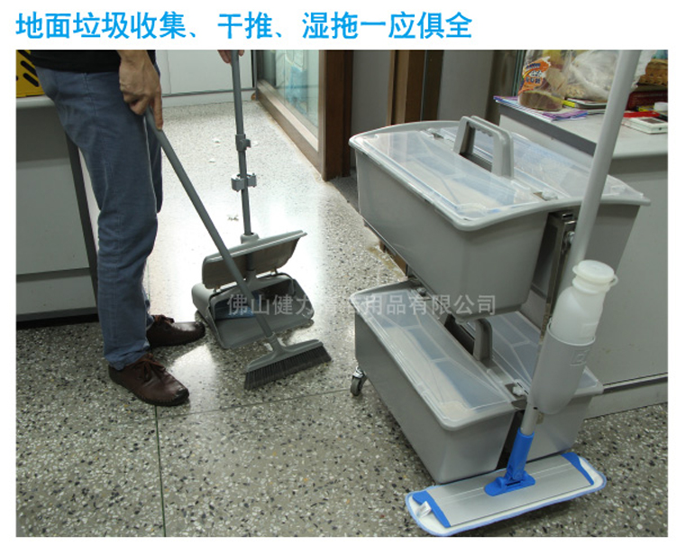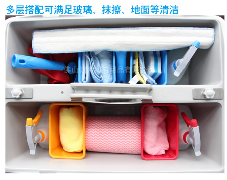 施達 趟門儲物箱+捲簾頂蓋清潔清潔服務車/平拖 配三桶