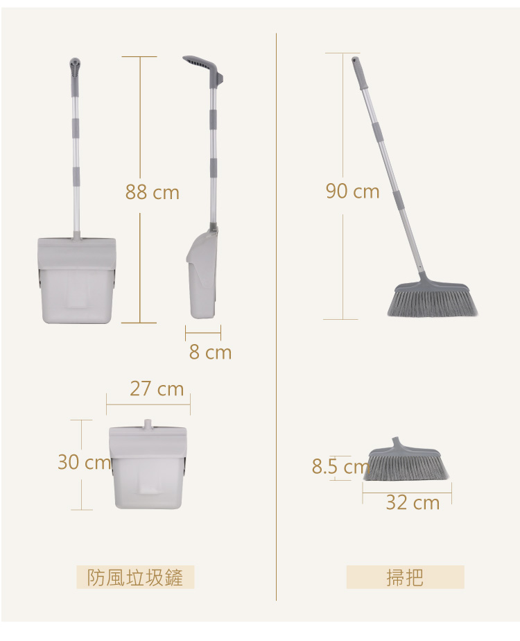Dr.Dirt 三節杆防風垃圾鏟連掃把套裝