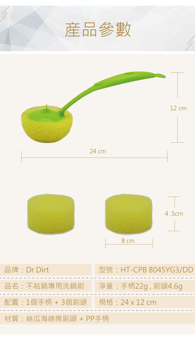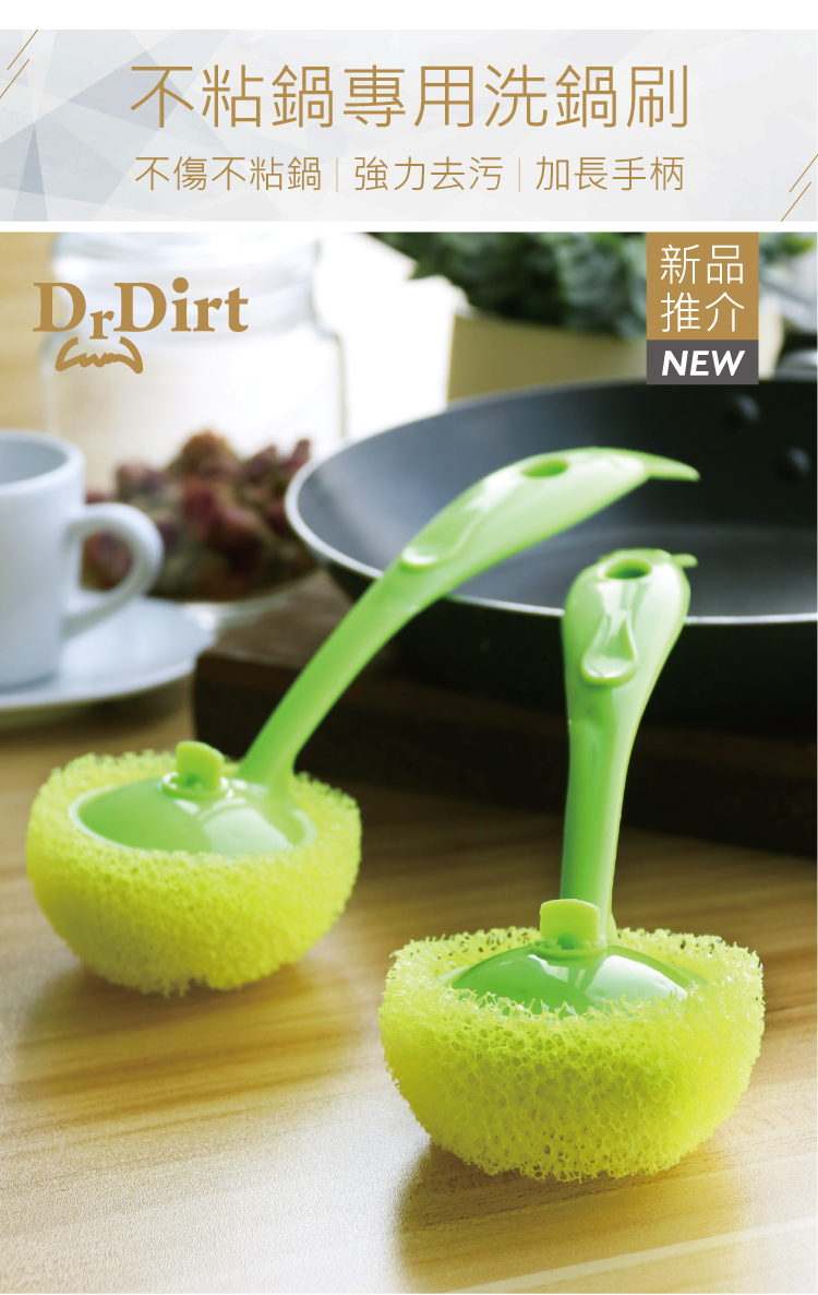 Dr.Dirt 不粘鍋洗鍋刷 (1個綠色手柄+3個黃色替換頭)