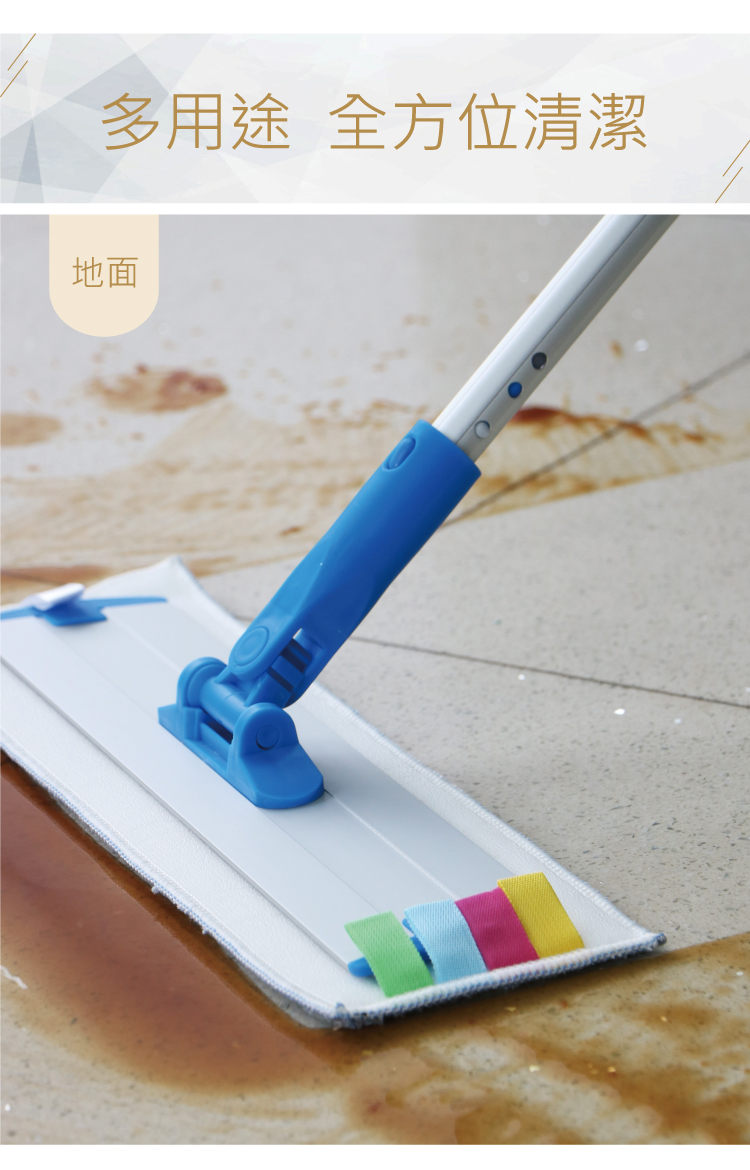 CT施達 經濟型微纖平拖布 藍色間條 4色分色帶 44CM